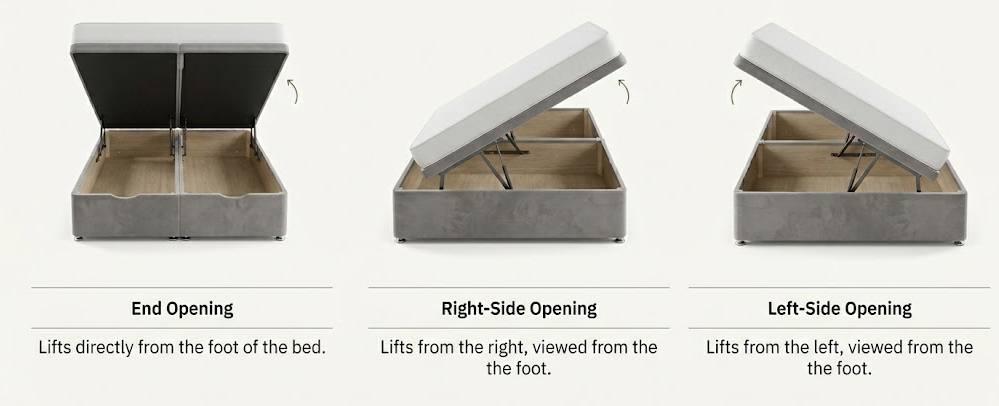 Full Ottoman Set: Includes Ice Gel 2000 mattress, gas-lift storage base, and your choice of headboard and fabric colour.